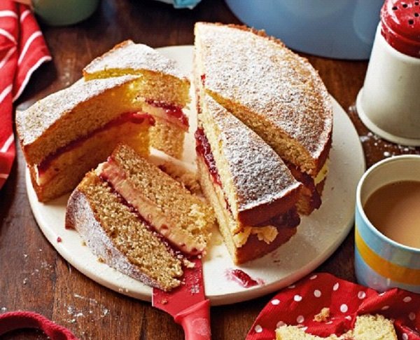 - نبدأ بتحضير الحشوة فنضع 150 غرام زبدة والسكر الناعم وبرش البرتقال وعصير الليمون في وعاء كبير ونخلط المكونات جيداً ثم نضيف الحليب أو الكريمة . نضع أحد قوالب الكيك على طبق التقديم ونوزع فوقه مزيج الزبدة ثم المربى، بعدها نضع قالب الكيك الآخر فوقه ونضغطه للأسفل قليلاً ونرش عليه سكر ناعم ثم نقطع طبقات الكيك الشهية ونقدمها مع فنجان شاي .