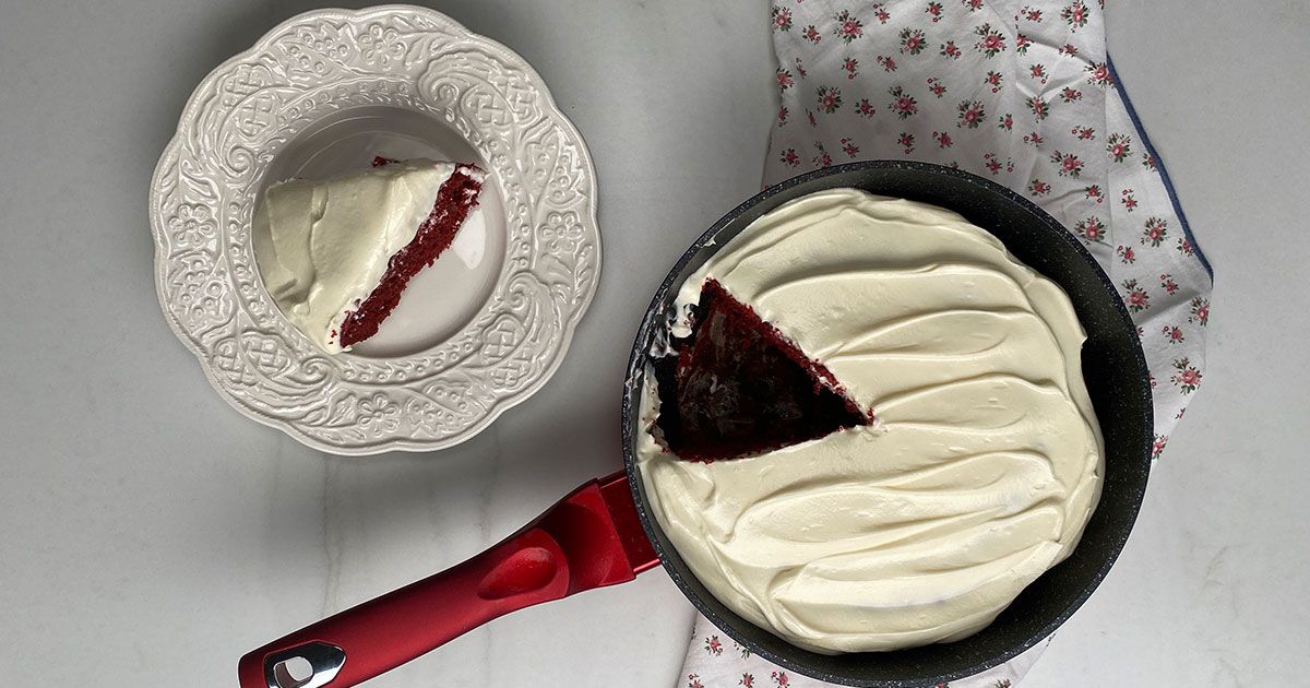 6- ضعي ورقة زبدة على وجه المقلاة ثمّ غطيها واتركيها على حرارة متوسطة حتى تنضج الكيكة.