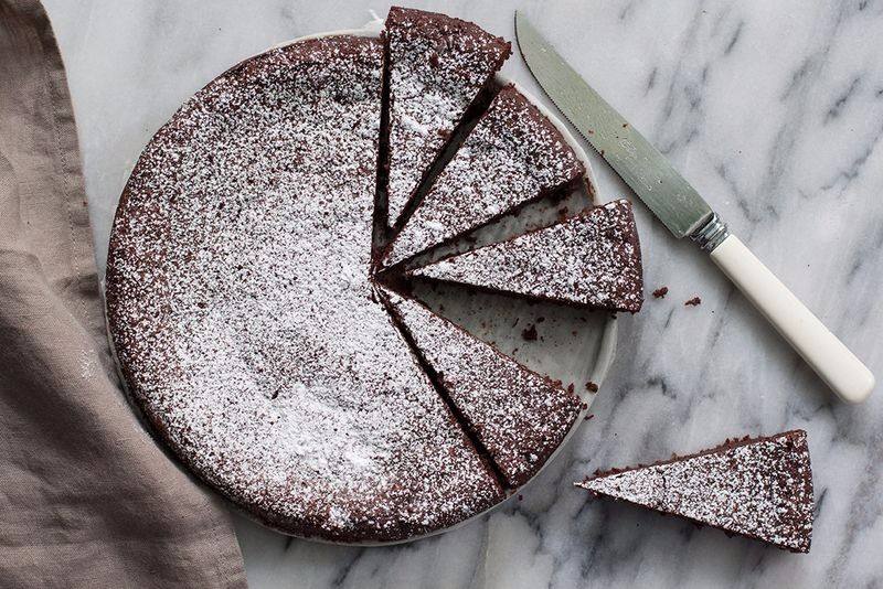 - يصب الخليط في قالب بايركس مبطن بالدقيق.