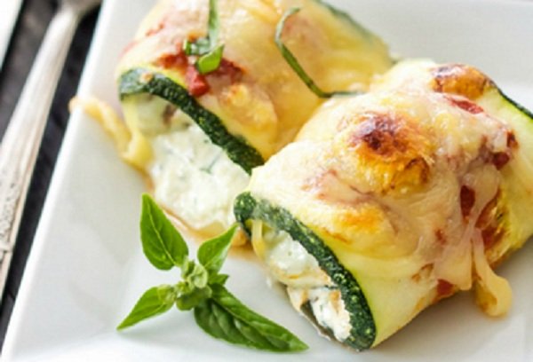 لفائف الكوسا بالجبن محشوة بالجبن والدجاج التركي، وتعتبر لفائف الكوسا بالجبن صحية للأشخاص المصابين بحساسية الغلوتين أو الاضطراب الهضمي، يمكن استخدام شرائح الباذنجان كبديل عن الكوسة .