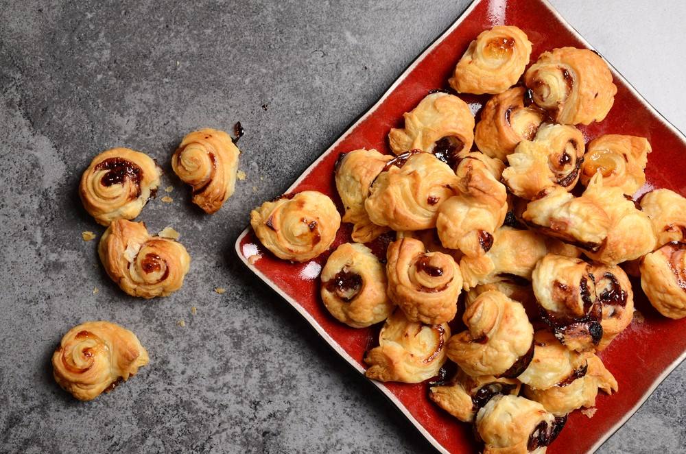 - توضع عجينة الباف باستري على سطح نظيف، وتدهن بالبيض.