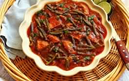 ٤- تضاف البندورة و اللوبياء الى اللحم وتقلب و تتبل بالملح والفلفل وتقلب لمدة عشر دقائق.