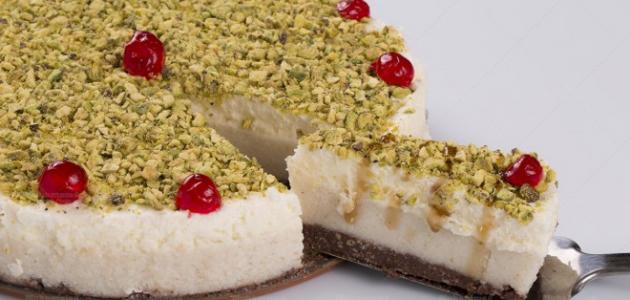 - بعد أن يبرد الخليط ويصبح متماسكاً، نسكب القشطة عليه، ثم نرتب سطحها بملعقة مستوية، ثم نرش فوقها اللوز والفستق الحلبي والصنوبر.