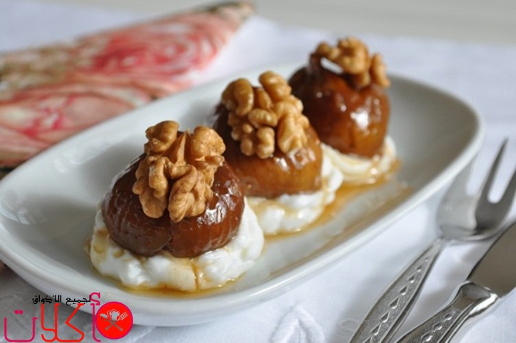 - – وعند التقديم نضع كمية قليلو من القشطة ثم حبة التين ثم حبة الجوز الصحيحة ويصبح جاهز للتقديم