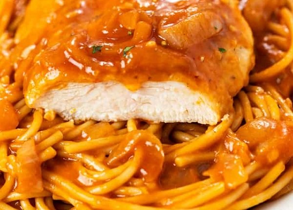 المكرونة بالدجاج والصوص الأحمر من الأطباق المعروفة والشهية وعادة ما تطهى باللحم ولكن في هذه الوصفة تسلق المكرونة وتوضع في صوص من الدجاج ودبس الفليفلة ومعجون الطماطم وطبعاً التوابل التي تضيف رائحة زكية ومذاق مميز للطبق وعندما تمتزج توضع في طبق وتقدم .
