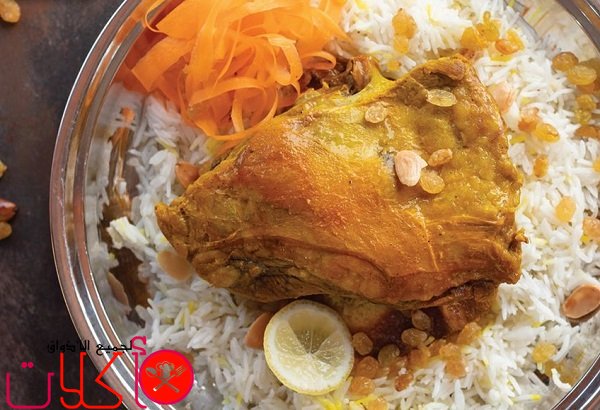 - نضع اللحم في وعاء ونتبله بالملح والفلفل والكركم ومنقوع الزعفران ونقلبه جيداً حتى تتوزع التتبيلة على جميع أطراف اللحم ثم نغطيها بالنايلون ونضعها في الثلاجة .
