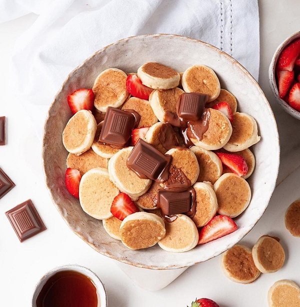 ميني بان كيك بدون بيض وصفة خفيفة ولذيذة ومناسبة للأشخاص الذين لديهم حساسية من البيض يمكن أن تقدم مالحة مع جبنة أو حلوة مع فواكه أو كريمة وشوكولا .