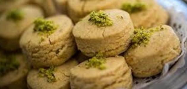 - نقطّع العجينة إلى كرات صغيرة ونشكّلها باليد أو باستخدام القوالب بالأشكال التي نريد ونضع حبّة الفستق في وسط كل حبّة ونضغط عليها قليلاً حتى تثبت.