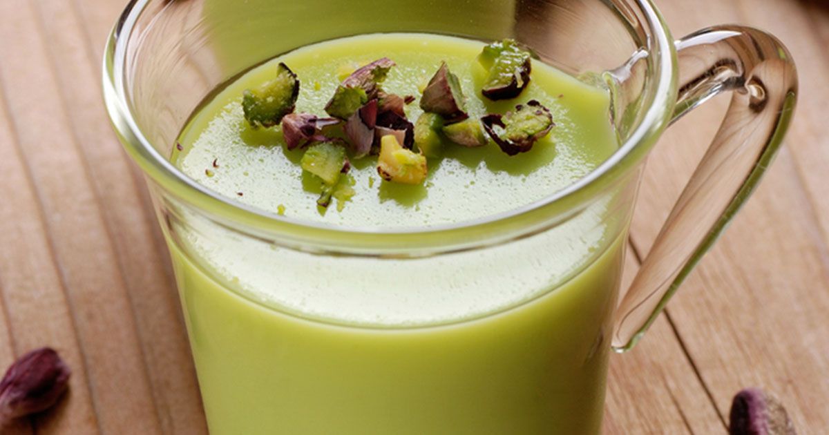 1- في الخلاط الكهربائي، ضعي الفستق الحلبي، كريمة الخفق، الحليب، بودرة الكاكاو والقهوة سريعة الذوبان.