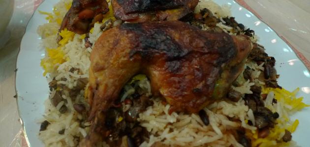 - بعد أن ينضج الأرز نَضعه في طبق التقديم، ونُوزّع الدجاج فوقه والمُكسّرات المقليّة.