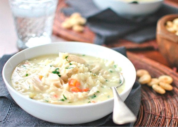 - نضيف مرق الدجاج حسب درجة السماكة التي نفضلها، ثم نسكب رذاذ من زيت الزيتون على وجه الطبق، ونضبط الملح والفلفل