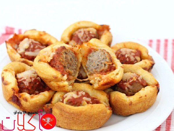 ميني بيتزا سهله باللحم بعجينة الكروسان بطريقة ميني بيتزا الصغيرة التي تقدم كمقبلات غنية بالنكهة مع كرات اللحم وصلصة مارينارا الإيطالية الشهيرة مع جبنة الموزرايلا، وتتميز بسرعة تحضيرها بقوالب الكبك الكيك نظراً لاستخدام عجينة الكروسان .