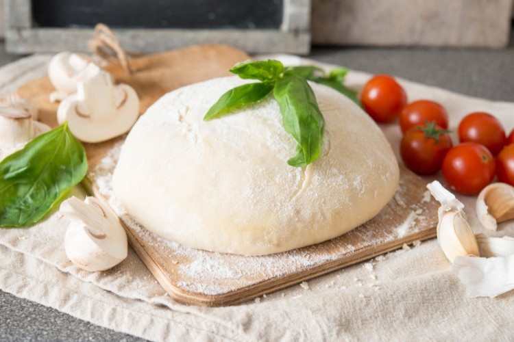 6. بعد أن تتخمر العجين يمكنك بدء العمل بها ومدها وحشوها بحشوة البيتزا المفضلة.