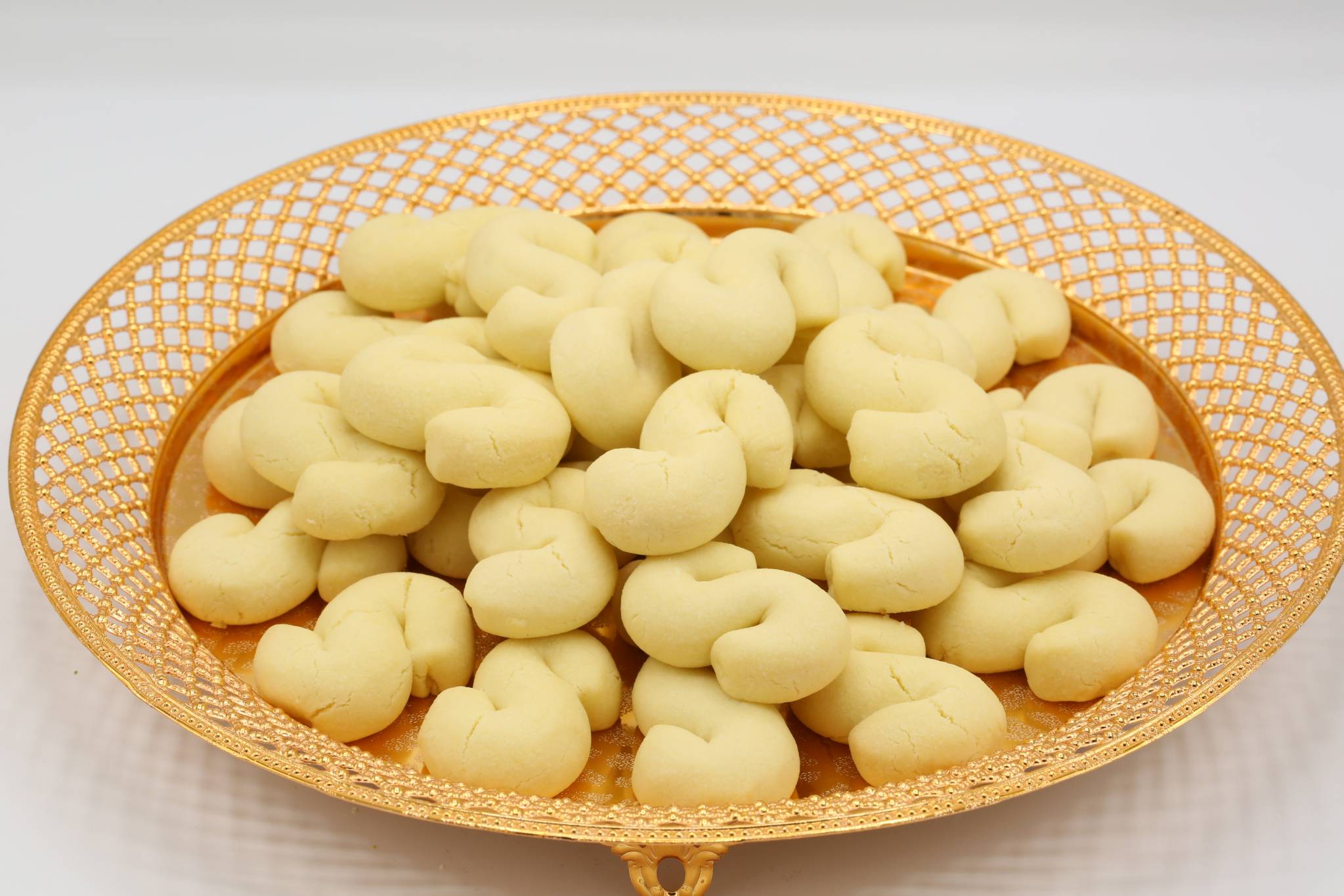 خذي قطعة من العجينة بحجم حبة الجوز وشكليها إلى أصابع أو حسب الأشكال التي تفضلين. ضعي حبات الغريبة في الصواني مع ترك مسافة ١ سم بينها.