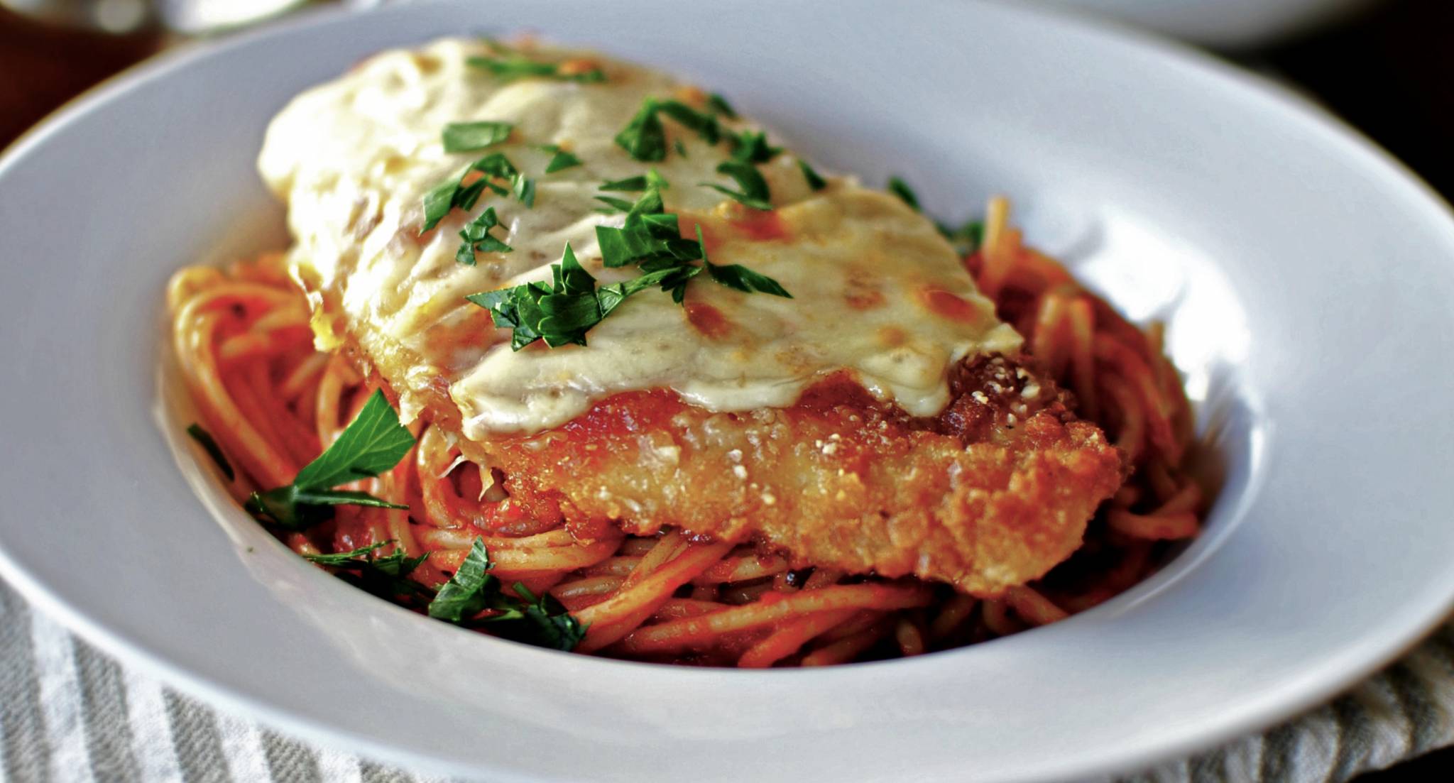فراخ بانيه بالجبنة الموتزريلا مع السباجيتي