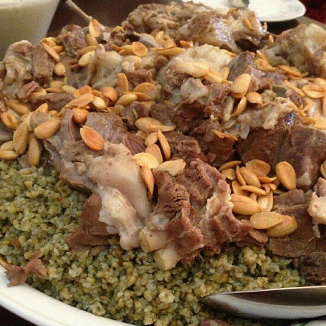 - قومي بفصل اللحمة عن العظام، وقدمي الفريكة في طبق التقديم وزيني الطبق بقطع اللحمة.