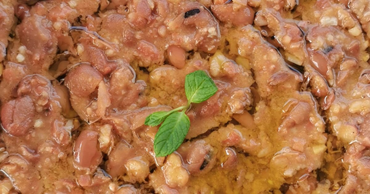 8- اهرسي بواسطة الشوكة بعض حبات الفول ثم نكهي بالكمون.