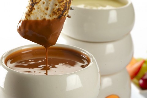 - يغرف الفوندو فى الإناء المخصص للفوندو يكون أسفلة شمعة ويقدم مع تشكيلة من أسياخ الفاكههة أو المارشميلو.. بالهنا والشفا