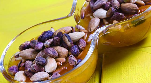- 0.5 كوب من كل من الصنوبر واللوز والفستق ، محمص
