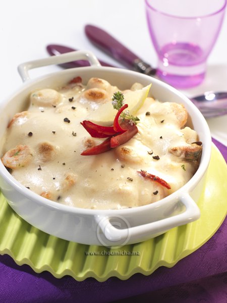 - مقادير صلصة البيشاميل بمرق الجمبري :