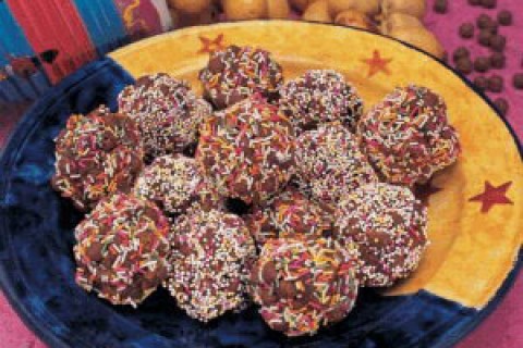 - تُدحرج الكرات فوق حبوب الشوكولاتة الملونة الخاصة بالتزيين.