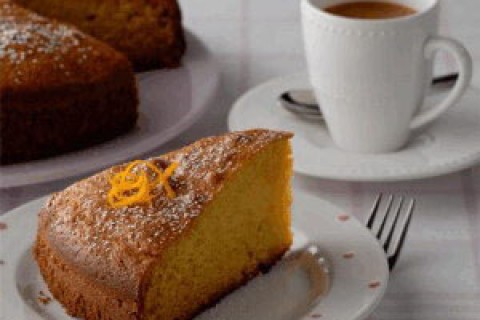 - يُسكَب المزيج في صينية مستديرة للخَبز قطرها 24 سم مدهونة بالزبدة والدقيق. ويُخبَز المزيج في فرن محمّى على حرارة 185 درجة مئوية لمدة 50-55 دقيقة أو حتى تنضج الكعكة.