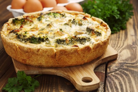 - نبدأ بفرد عجينة الفطائر على سطح مستوٍ بالإستعانة بالقليل من الدقيق منعاً لإلتصاقها، ونتابع فردها بشكل دائري إلى أن تصبح بسماكة 1 سنتيمتر وبقطر 27 سنتيمتر. ثم نضعها في صينية خبز الكيش أو بطبق من الزجاج المقسى ( بايريكس )، ثم نقوم بتبريد العجينة في البراد ب