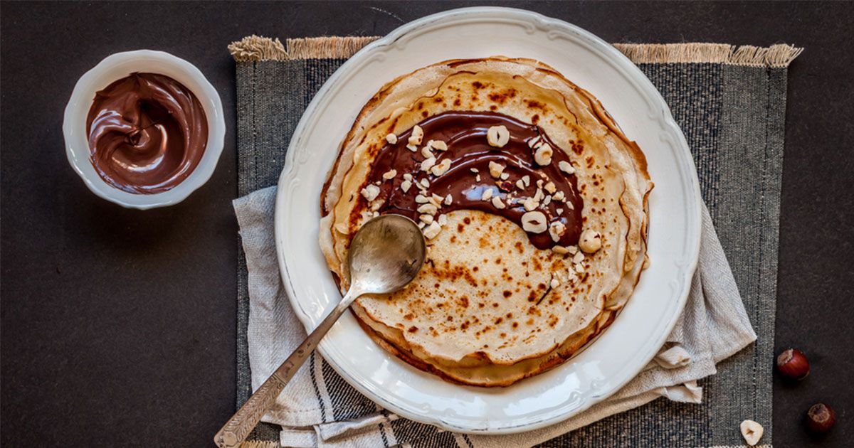 8- قدمي الكريب مع شوكولاتة الدهن والبندق.