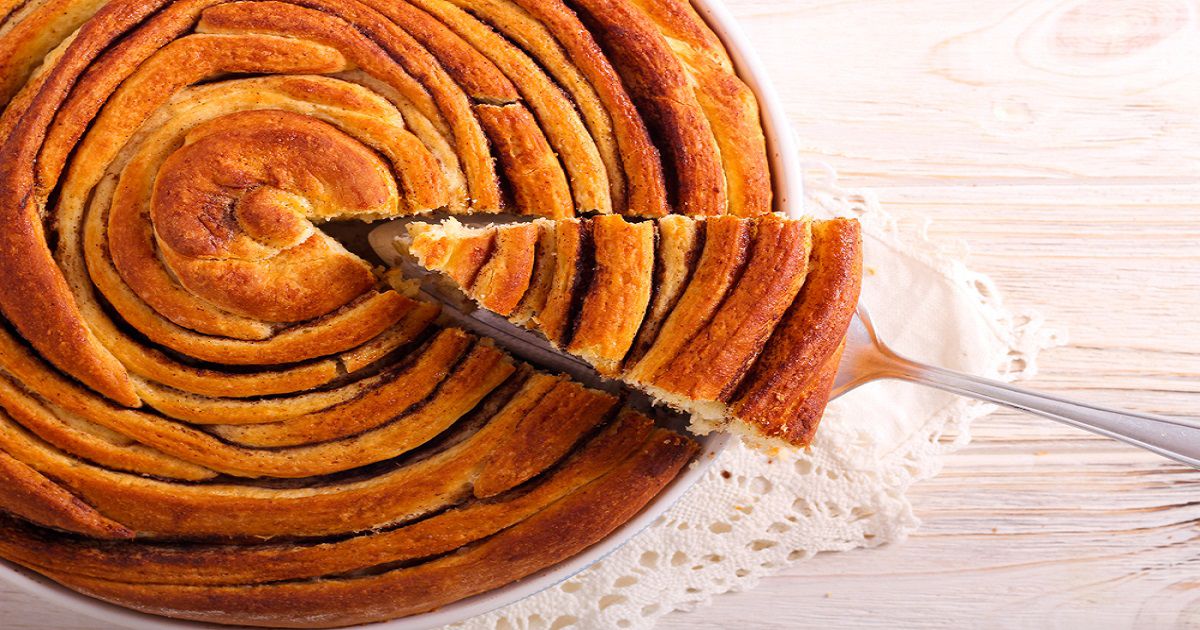 8- ضعي الحشوة في كيس الحلويات وزيني بها مزيج الكيك بشكل دائري كالسينابون رول.