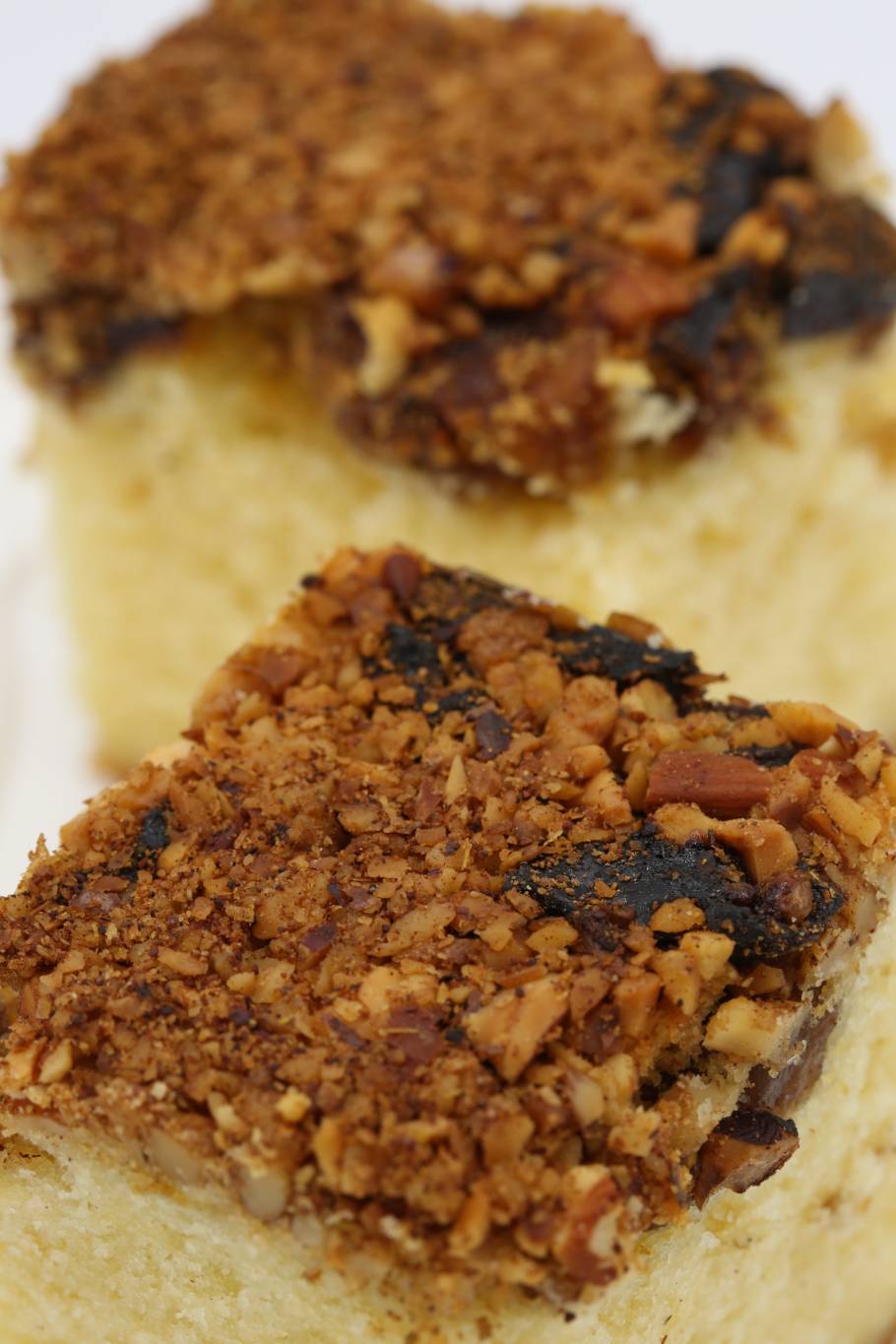 خليط الياميش: في طبق عميق ضعي التمر، المشمش، القراصيا، التين، المكسرات المشكلة، القرفة والهيل. قلبي المواد لتختلط. ضعي الخليط في القالب لتغطي القاع تماما.