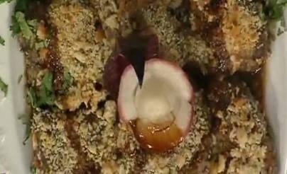 النار ثم نرصها في صينية فرن ونضع فوقها المستردة والأعشاب ونضعها في قلب
