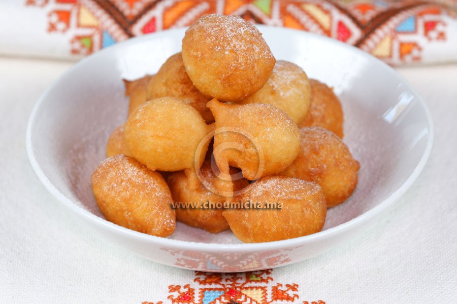- تشكل كويرات صغيرة من العجين وتقلى في حمام زيت ساخن حتى تصبح ذهبية اللون.