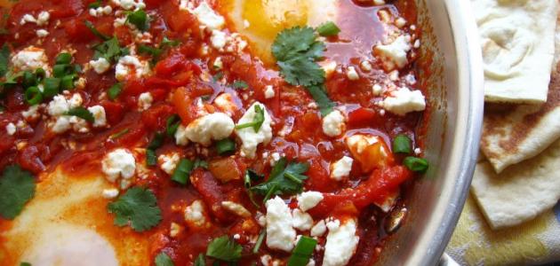 - نضع فوق الخلطة السّابقة البيض المَخفوق، ونتركه دقيقتين حتّى ينضج، ونقدّمه ساخناً مع الخبز.