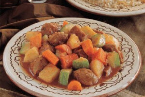- يُضاف الماء ومكعبات مرقة الدجاج ماجي ويُطهى المزيج على نارٍ خفيفةٍ مع تغطية القدر لمدة ساعة أو إلى أن يصبح اللحم طريّاً تقريباً.