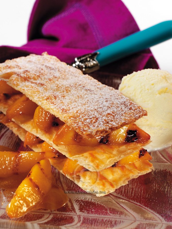 ميلفيه بالخوخ المعسل، مثلجة بالفانيلا