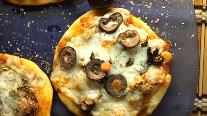 - بيتزا التونة : تضاف التونة الي العجينة المفرودة وعليها الصوص وثم نضيف والزيتون الأسود والجبنة المبشورة ثم تدخل الفرن .