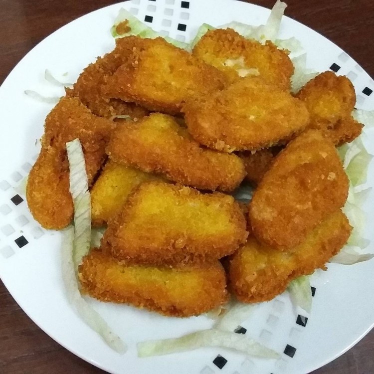 4. بعدها استخدمي السكين وتقطيع الدجاج إلى مربعات صغيرة، وضعيها فى الفريزر مرة أخرى لمدة نصف ساعة حتى تتماسك، ثم ضعيها فى خليط بقسماط البانيه العادي واقليه فى زيت غزير، وقدميه مع الخبز والبطاطس المحمرة أو السلطة، ويمكنك قلي مربعات الدجاج حسب حاجتك فقط، والاحتفاظ بالباقي في علبة محكمة فى الفريزر، وتصلح هذه الوصفة لتكون سندوتشات لأبنائك في المدرسة.