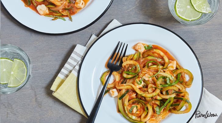 نودلز الكوسا طبق رائع وبديل ممتاز عن النشويات مصنوعة من الكوسا محمصة مع البصل والثوم ومضاف اليها جبنة الموازريللا الشهية، تقدم ساخنة وتزين بالريحان ، وهي من وصفات بالكوسة السهلة.