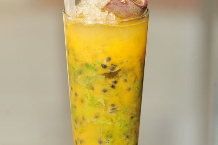 1 توضع المقادير مع بعضها البعض في داخل كأس التقديم، وتخلط بالملعقة.