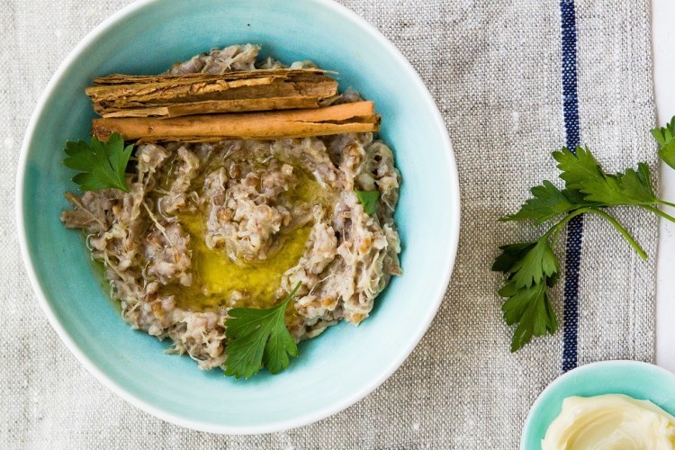 - بمجرد أن يصبح المزيج لزجاً، يمكن إضافة البهارات عليه مرة أخرى “حسب الرغبة”، وترش عليه الزبدة الذائبة ويزين بالبقدونس ويقدم.